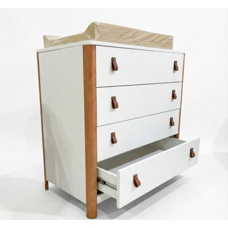 - Los muebles están fabricados en MDF, no se expande ni contrae con los cambios de temperatura. Se encuentran laqueados con lacas atoxicas sin plomo en 3 capas. Los cajones cuentan con correderas telescópicas.
